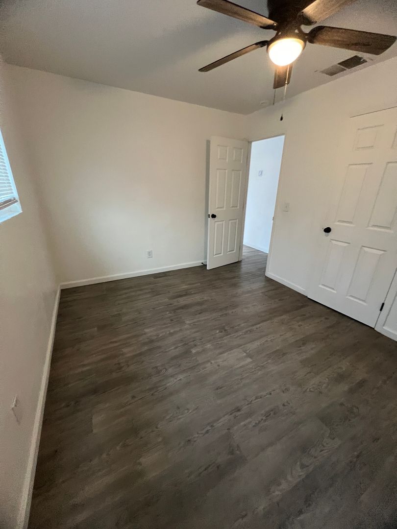 This recently remodeled 2 bedroom 1 bath home has new wood-look tile throughout. The kitchen features nearly new cabinets and granite countertops. The bathroom is nearly new as well! Home an electric mini-split AC/heater as well as a cooler and gas wall heater should you want to use those. Carport parking included. The backyard is fenced in and has a small covered patio for you to put your washer and gas dryer.