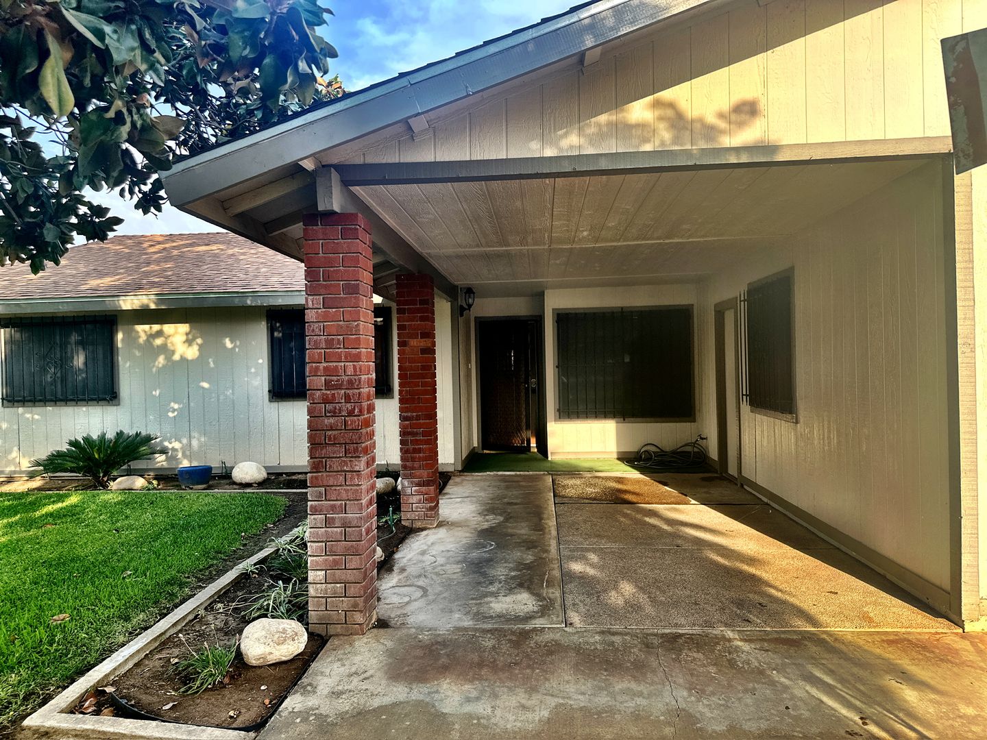 Welcome to this stunning 3-bedroom, 2-bathroom home located in the charming community of Woodlake, CA. This property boasts a range of modern amenities designed for your comfort and convenience. The home features central A/C to keep you cool during the warm California summers, and a dedicated laundry room for your convenience. The luxury vinyl plank flooring throughout the home adds a touch of elegance and is easy to maintain. The covered patio is perfect for outdoor dining or simply relaxing, while the front porch provides a welcoming entrance. The home also includes a two-car garage, providing ample space for your vehicles or additional storage. To top it all off, lawn service is included, allowing you to enjoy a beautifully maintained yard without the hassle of upkeep. This home truly offers a blend of comfort and convenience in a desirable location. Highly qualified applicants only.