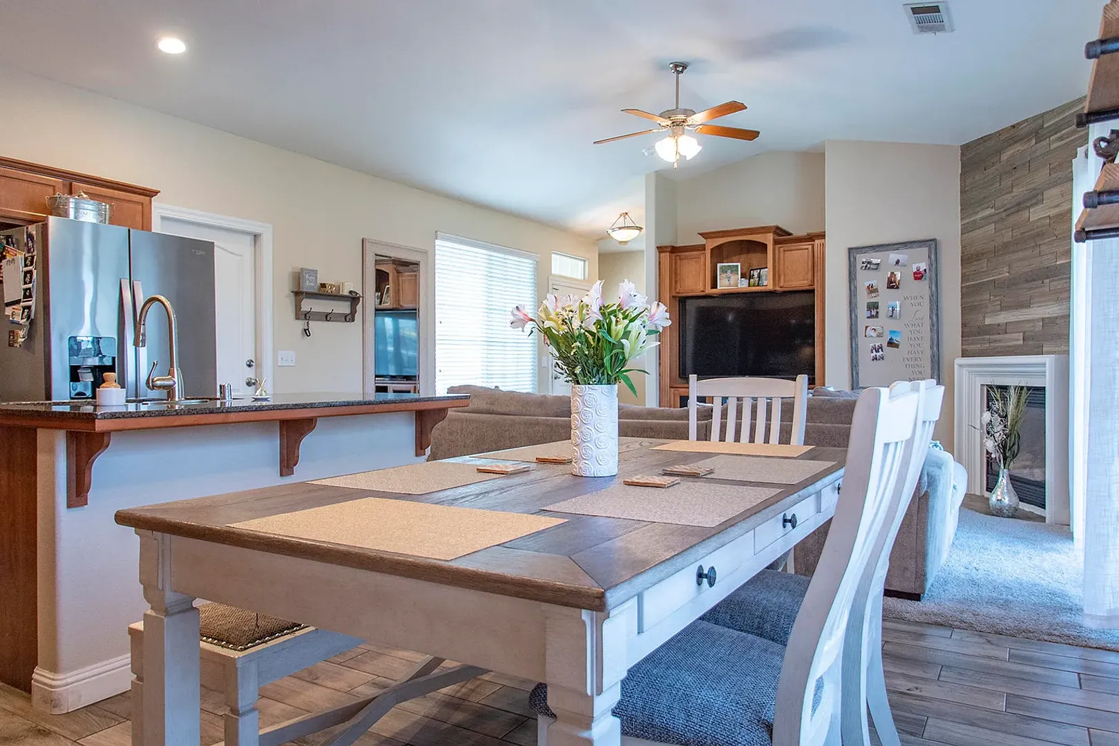 Welcome to this stunning 4-bedroom, 2-bathroom home located in the heart of Tulare, CA. This property boasts a range of modern amenities including central A/C, granite countertops, and stainless steel appliances. The bedrooms are newly carpeted, offering a cozy and comfortable living space. The rest of the house features wood-look tile flooring, adding a touch of elegance and easy maintenance. The home is situated on a large cul de sac lot, providing ample outdoor space for relaxation or entertaining. This unfurnished property offers a blank canvas for you to create your dream home. The location is ideal, with both Los Tules Middle School and Heritage Elementary School nearby, making it a great choice for those seeking quality education options. This home is a perfect blend of style, comfort, and convenience.