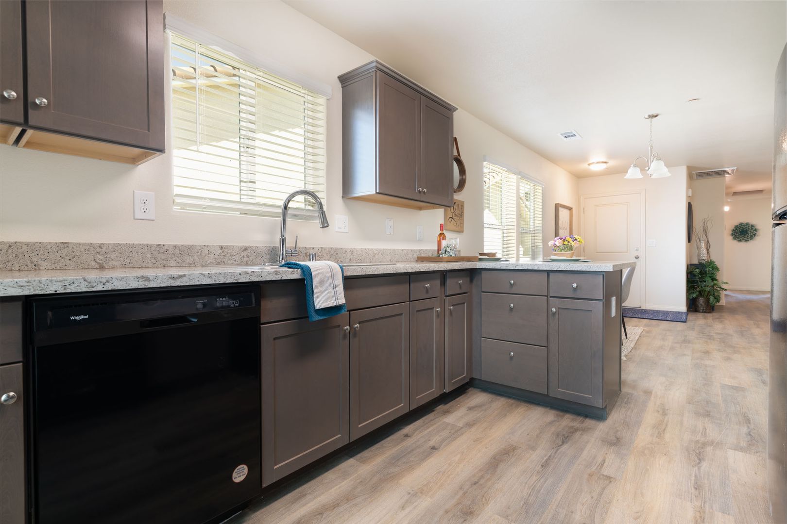 Now leasing the recently built Seminole Run II Apartments! This 3-year-old gated community offers the ultimate in apartment living. All units are single level with garage parking and EV charging. The modern kitchens feature custom cabinets with quartz countertops, plank flooring, and best of all, all appliances are included! Washer and dryer are conveniently located in laundry closet off the kitchen.